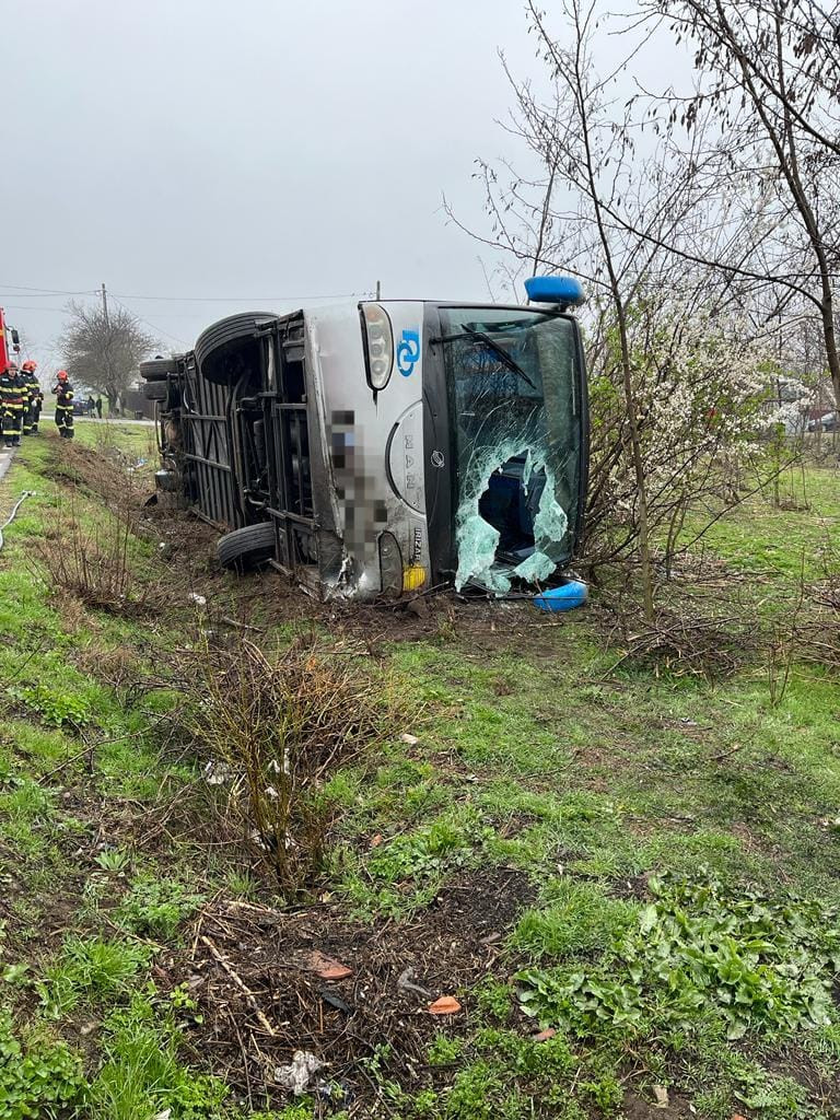 Un autocar plin cu pasageri s-a răsturnat, miercuri dimineaţă, în localitatea Raşi ...