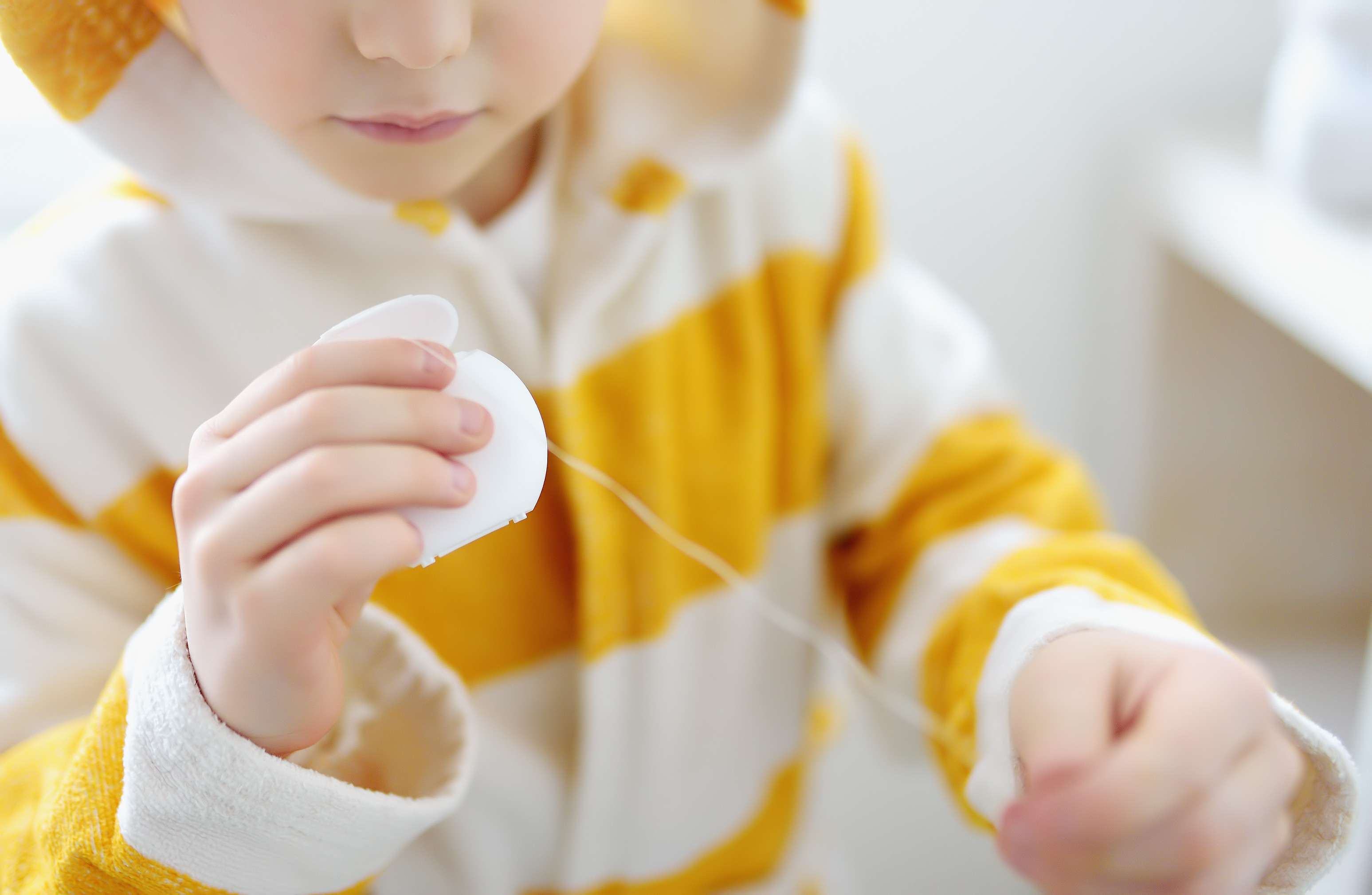 Ața dentară se folosește de la 3 ani, nu doar când apar dinții permanenți.
