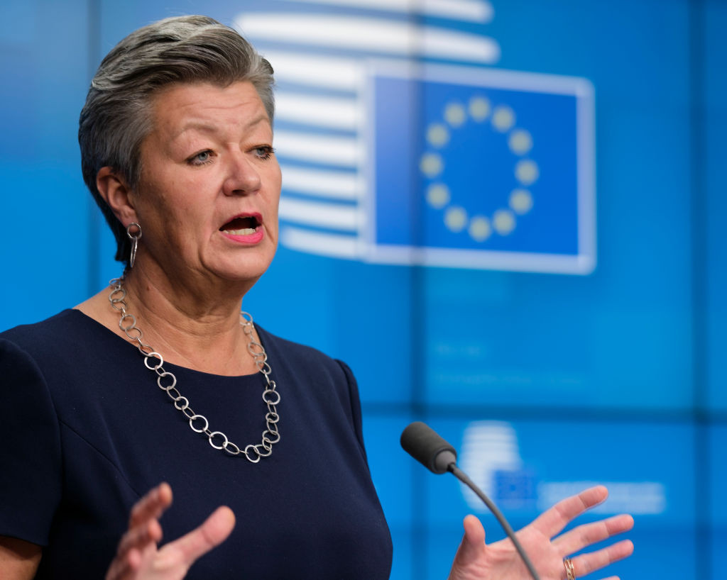 Comisarul european Ylva Johansson, responsabil pentru afaceri interne, face, luni, o ...