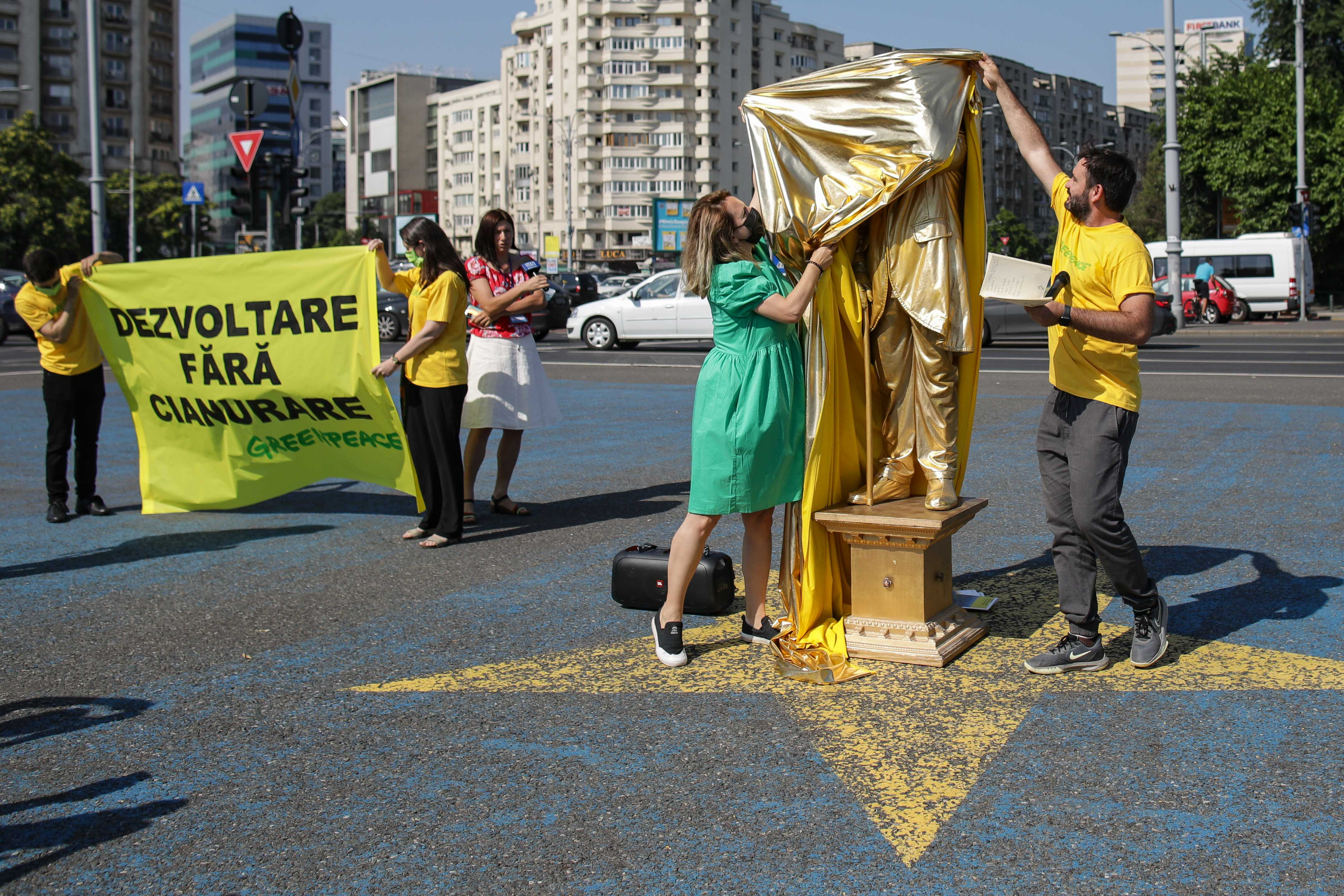 O statuie vivantă, care îl reprezentă pe Florin Cîţu, a fost dezvelită ...