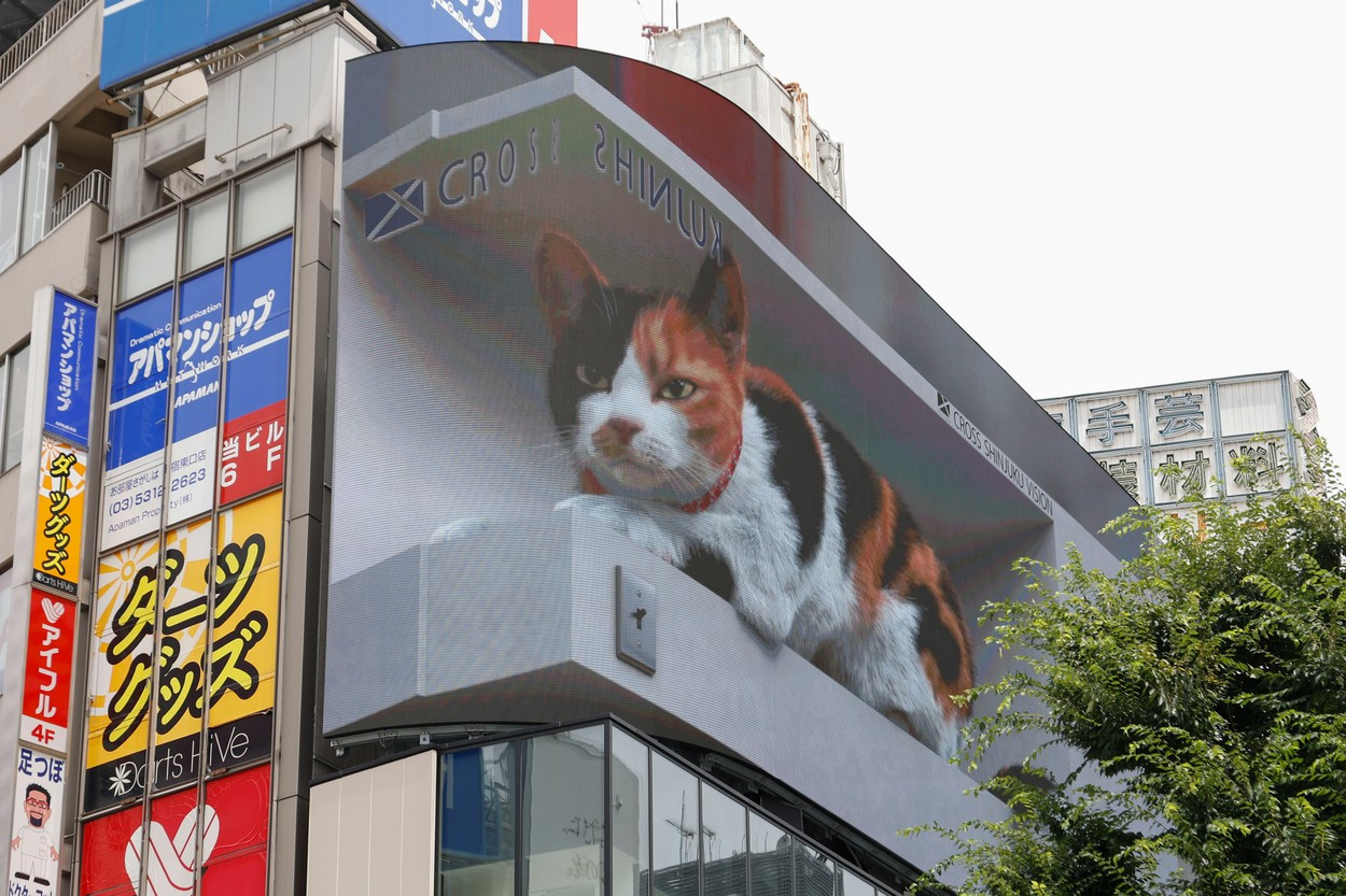 O pisică 3D uriașă a apărut pe un panou publicitar în Tokyo, în apropierea ...