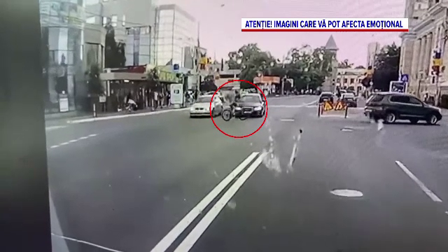 Momentul în care un biciclist neatent este izbit violent de un autoturism ...