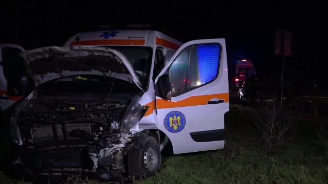 O ambulanță a fost spulberată sâmbătă seară de un autoturism pe o șosea din Vaslui.