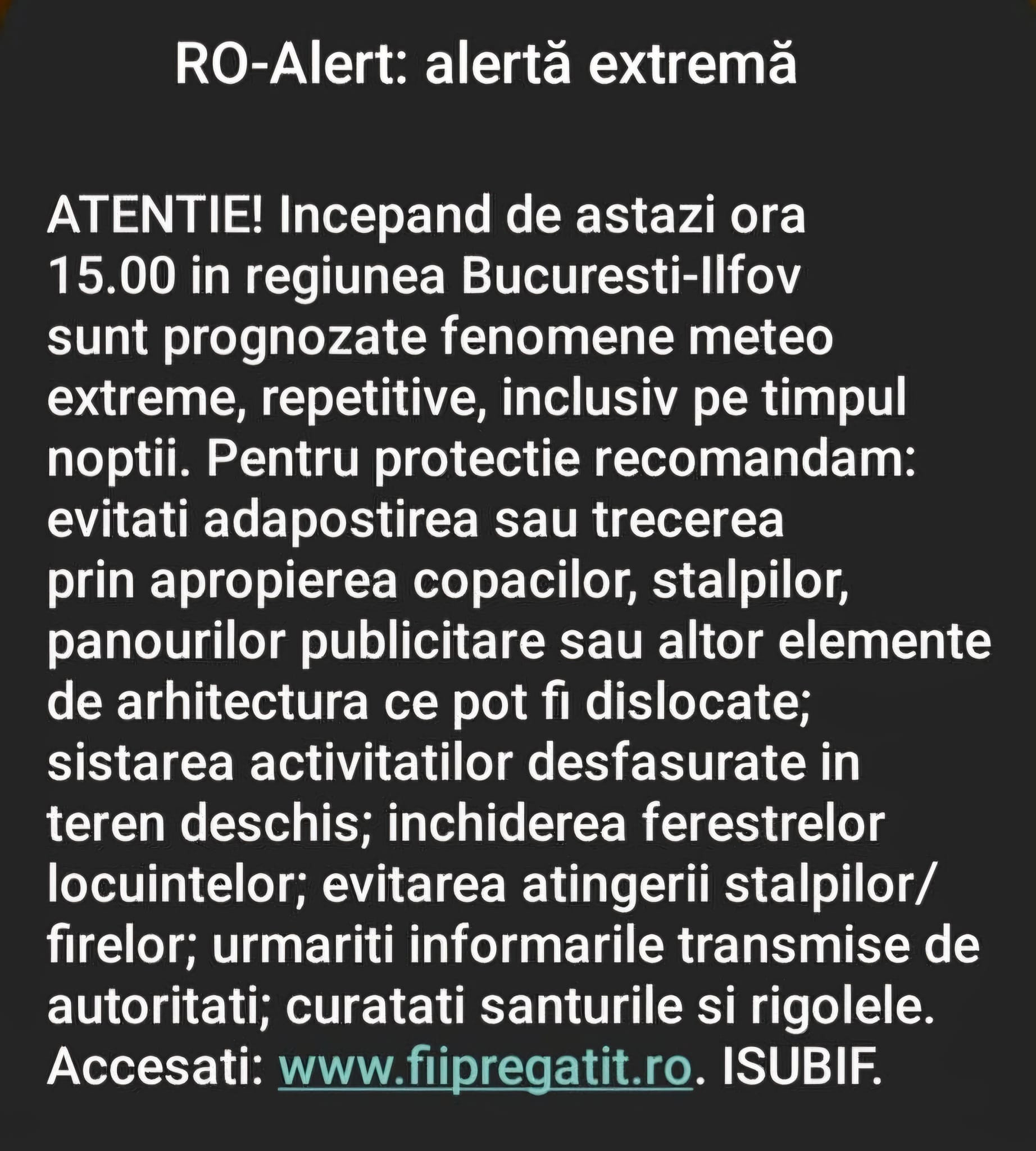 ISU București-Ilfov a emis duminică la prânz o avertizare de fenomene meteo ...