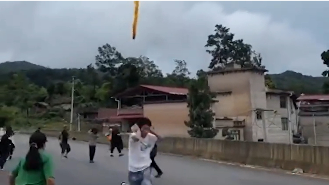 Resturile unei rachete au fost văzute sâmbătă căzând peste un sat din ...