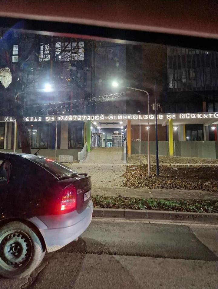 Pe scările de acces în noua maternitate care se va inaugura în Timișoara a ...