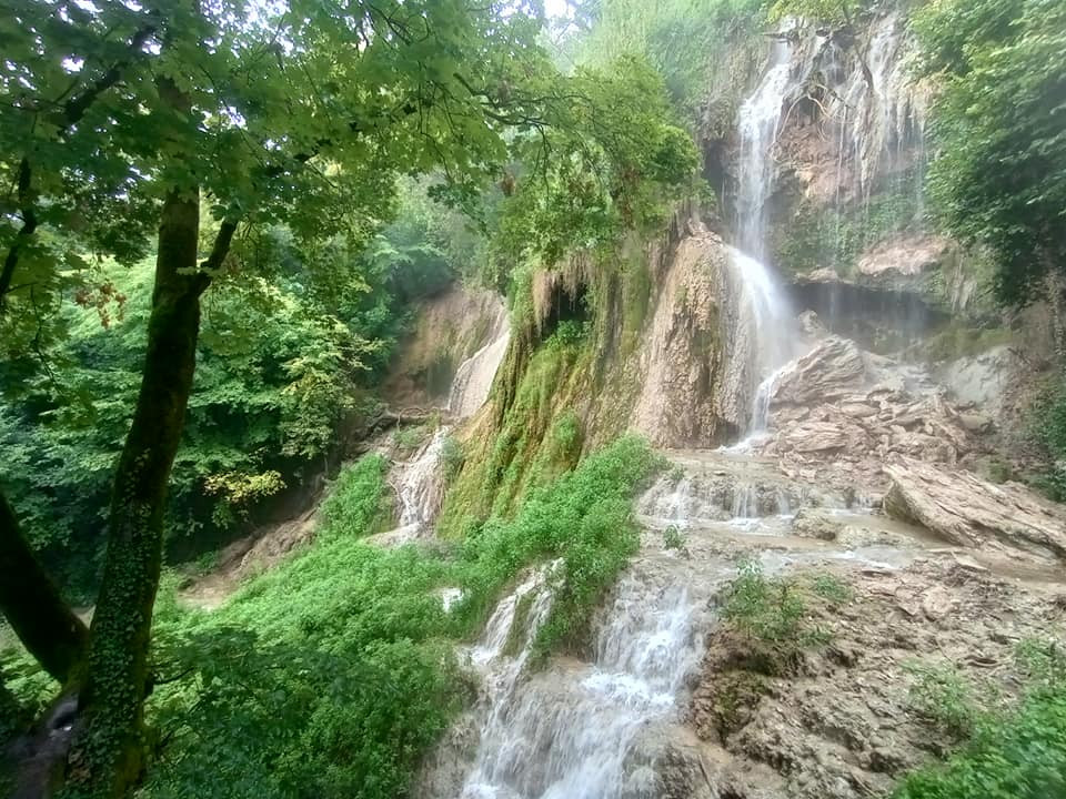 Mai multe formaţiuni calcaroase formate pe rădăcinile unor copaci de la cascada Clocota, ...