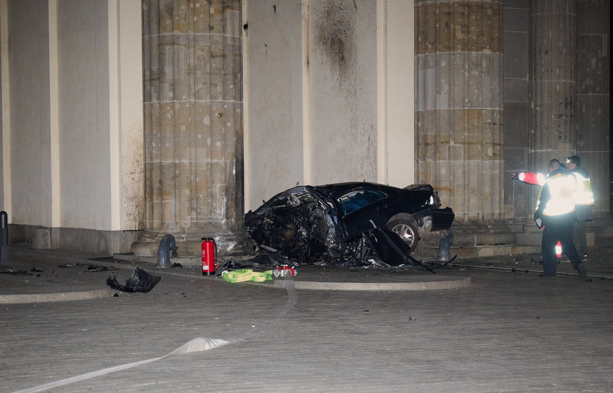 O maşină s-a lovit de Poarta Brandenburg duminică seara, şoferul pierzându-şi viaţa ...