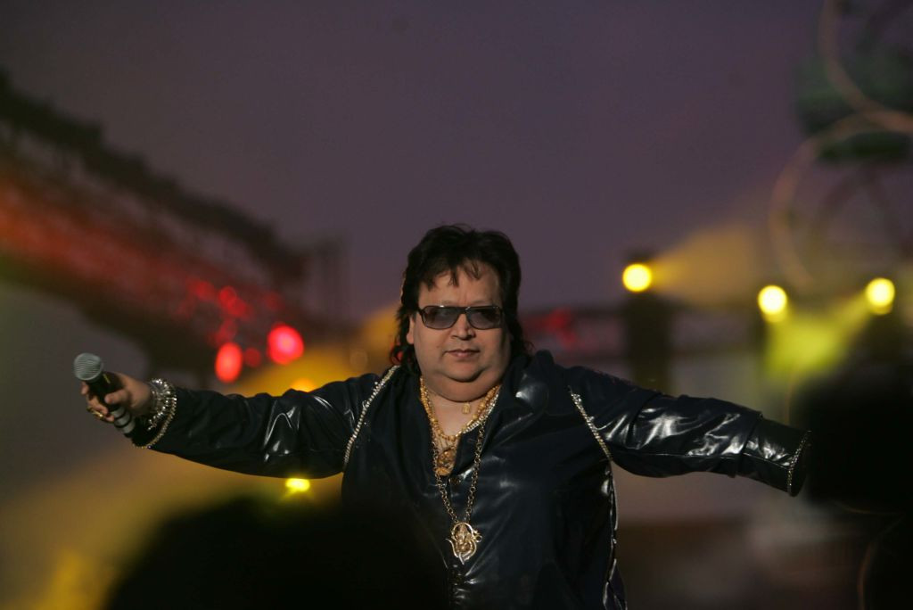 Compozitorul indian Bappi Lahiri, cunoscut pentru melodiile sale disco şi stilul său ...