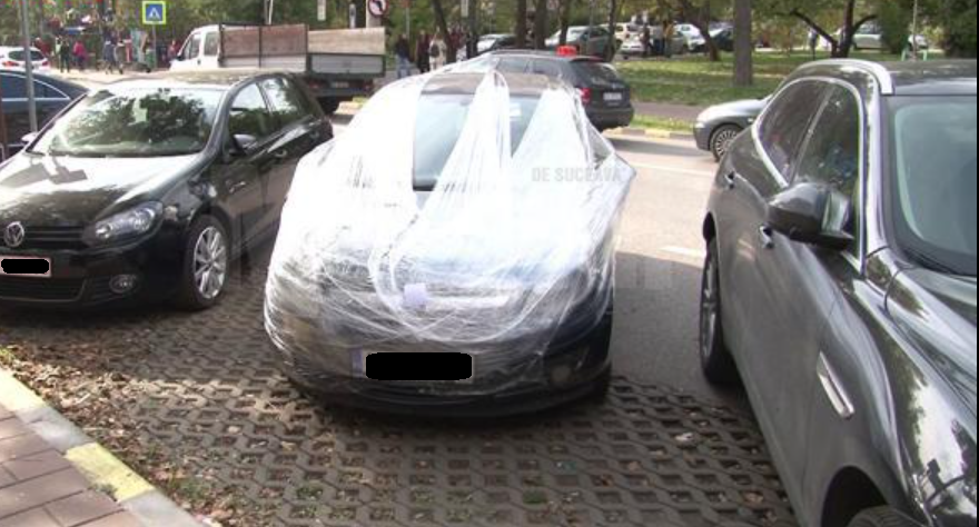 Și-au găsit mașina înfoliată, cu mesajul ”Parchează corect!” lipit pe ea. Unde a avut loc incidentul