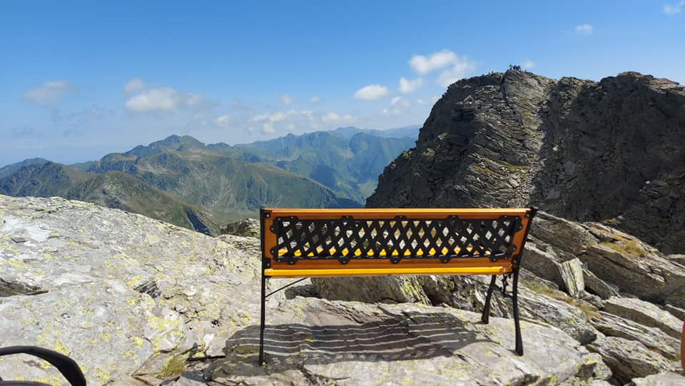 O familie din Sibiu a pus o bancă din fier și lemn pe Vârful Călțun, la peste 2.500 ...