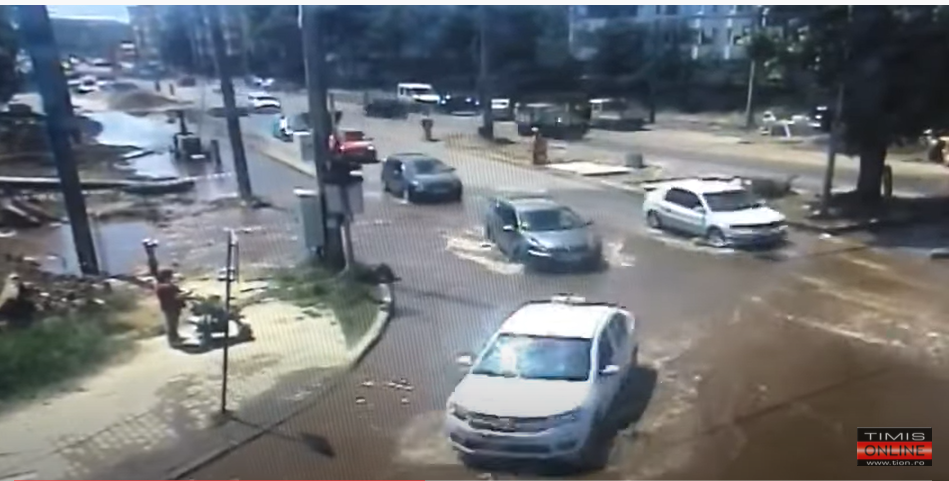 Două bulevarde din Timișoara au fost inundate vineri după ce un excavator care tocmai ...
