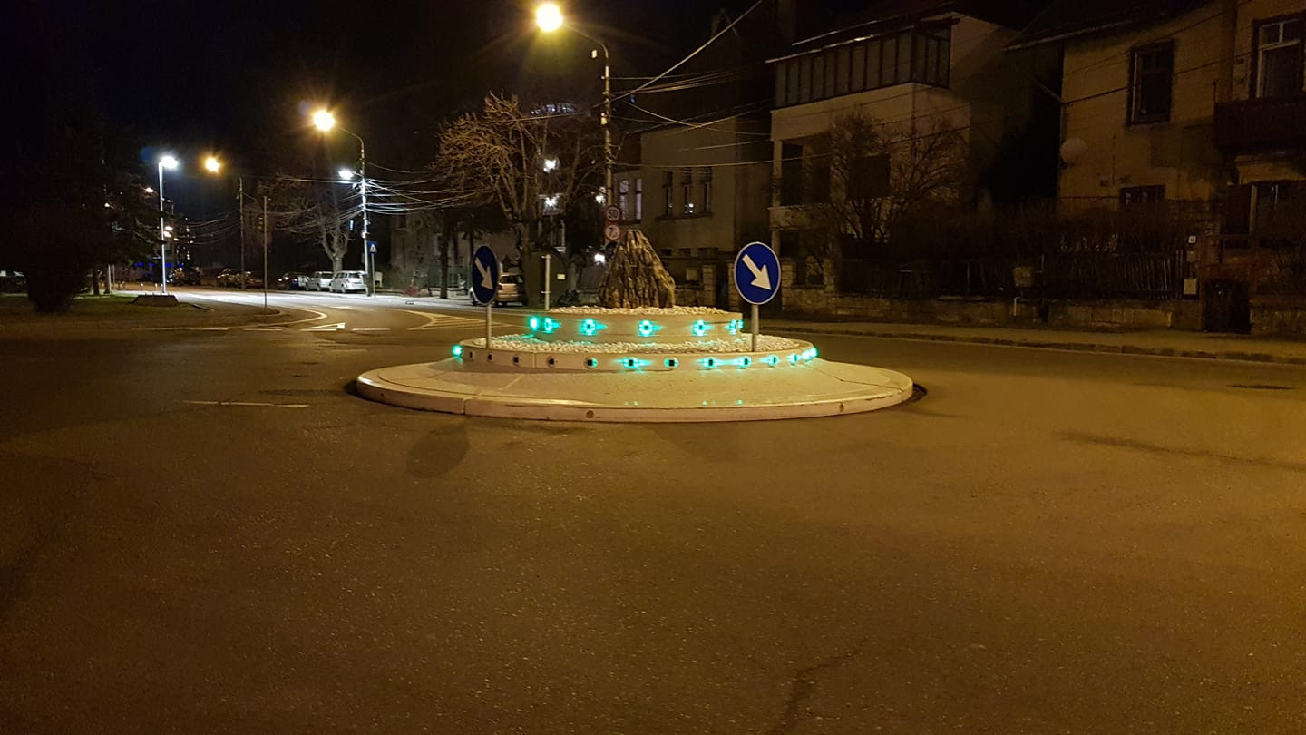 Un sens giratoriu luminat cu leduri din Cluj-Napoca a stârnit amuzamentul ...