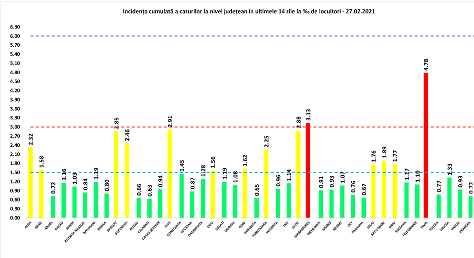 Judeţul Timiş se menţine în zona roşie, cu 4,78 cazuri de infectări cu SARS-CoV-2 ...