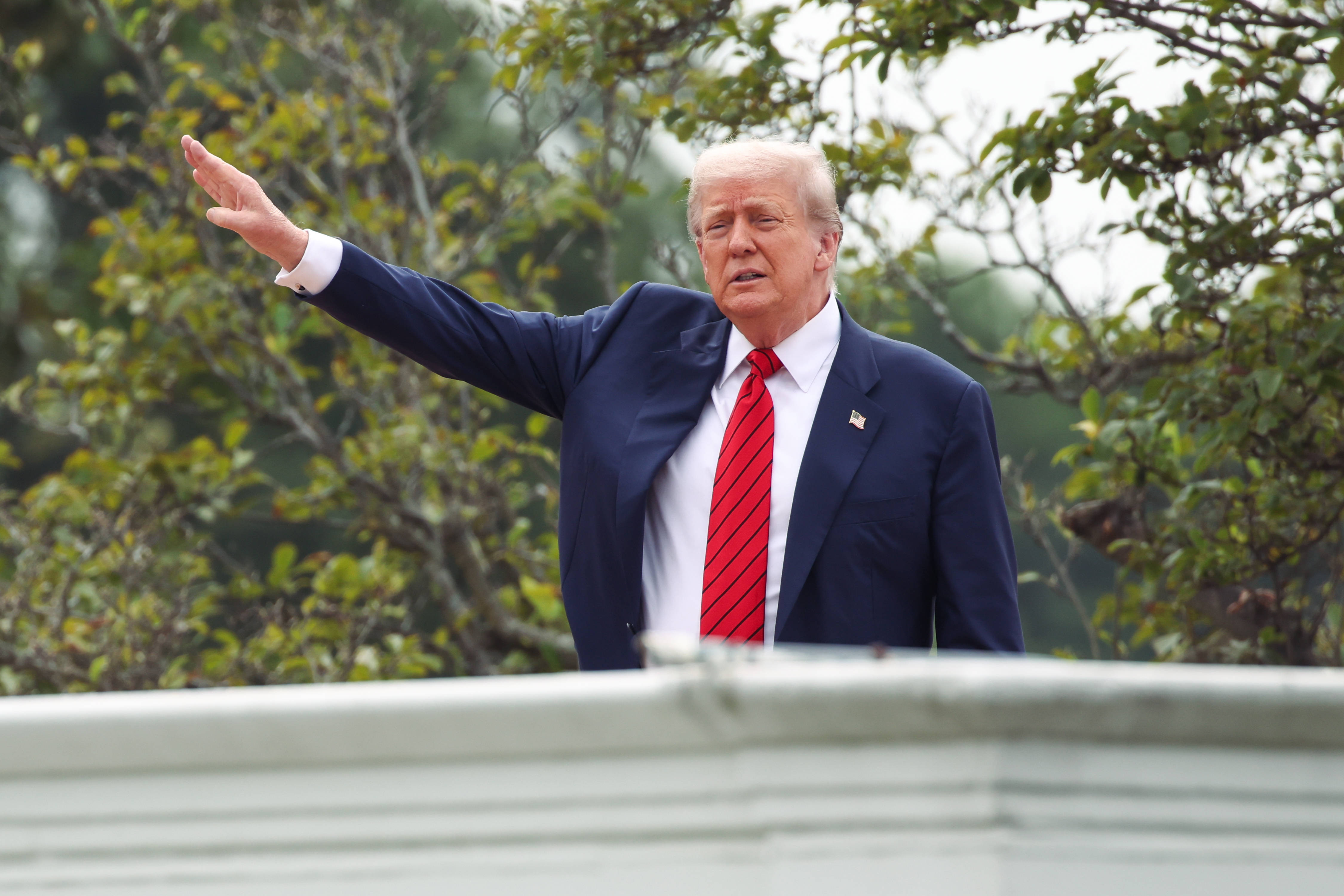 Donald Trump s-a urcat marți pe acoperișul Casei Albe și a glumit că va instala acolo ...