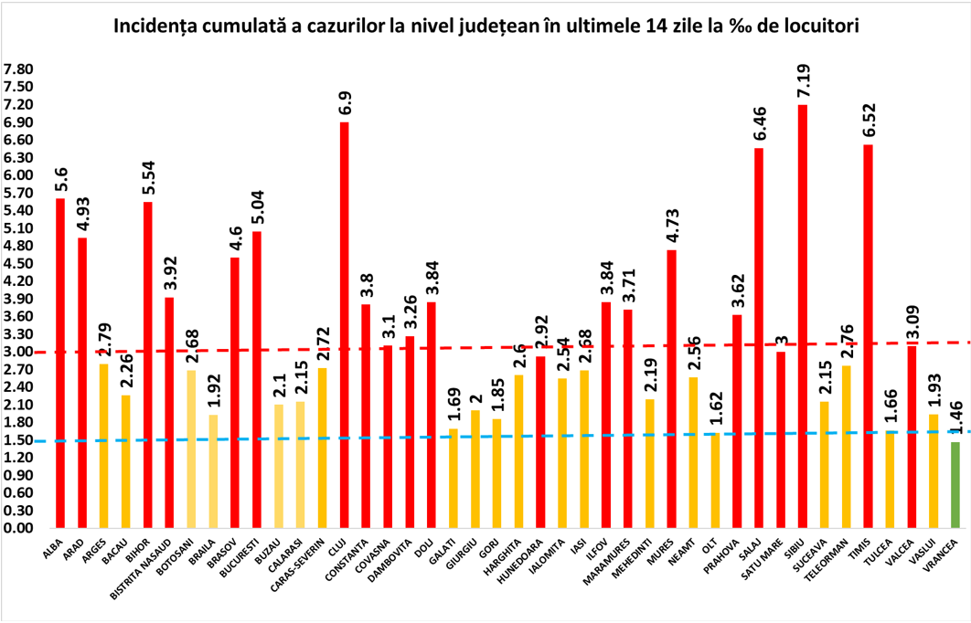 Vrancea a rămas singurul județ din România în scenariul verde, cu o rată de ...