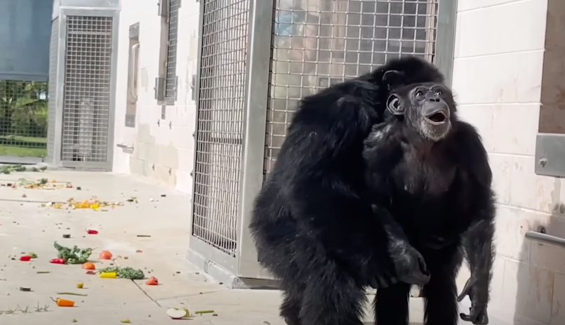 Un cimpanzeu în vârstă de 28 de ani, care a stat toată viața în cușcă, ...