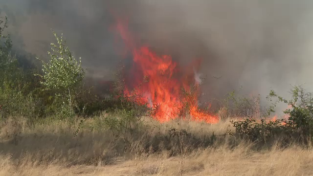 Un incendiu puternic a distrus aproape două hectare de vegetație inclusiv copaci, ...