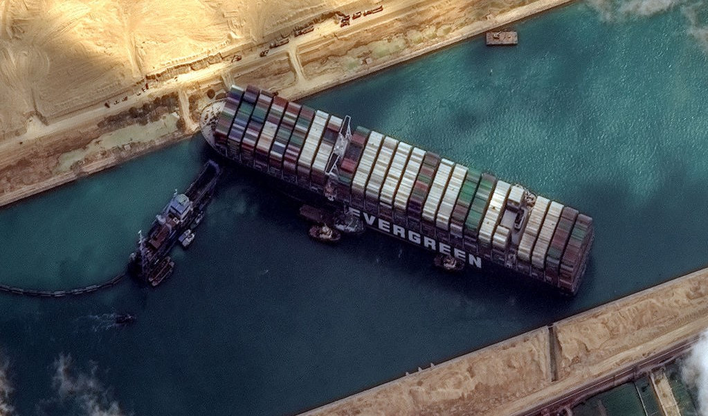 Toate navele aflate în aşteptare în zona Canalului Suez, după eşuarea navei ...