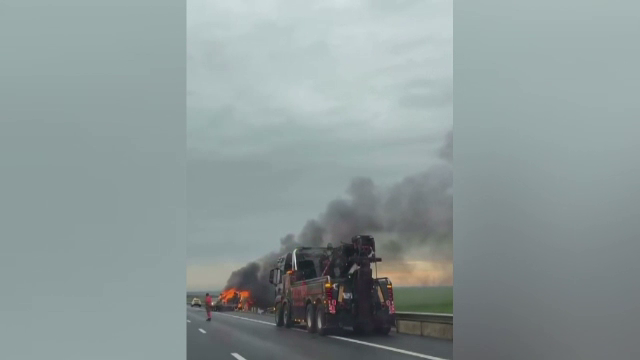 O ambulanță privată, transportată pe o platformă, a luat foc pe autostrada Arad - ...