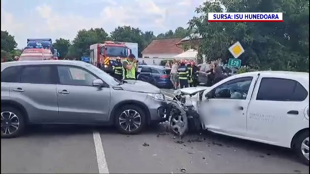 Impact violent între trei mașini, vineri, pe Drumul Național 66, în județul ...