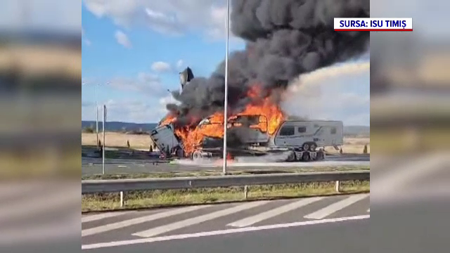 Un incendiu de proporții a izbucnit pe autostrada Lugoj - Deva, după ce o platformă auto ...