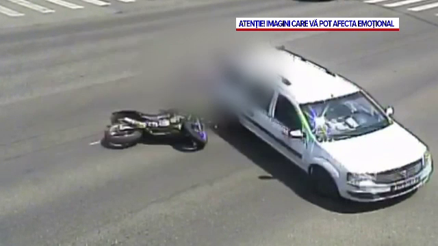 Impact violent între o motocicletă și un taxi, într-o intersecție din ...