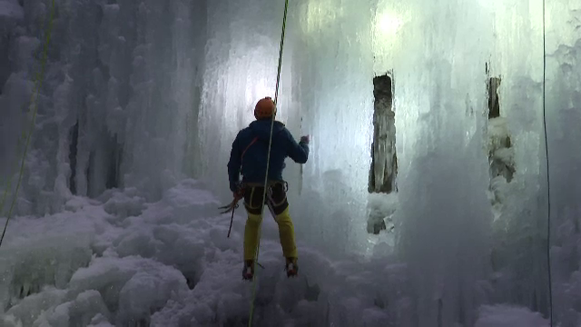 O cascadă înghețată de pe Valea Jiului a devenit zilele acestea loc de atracție ...