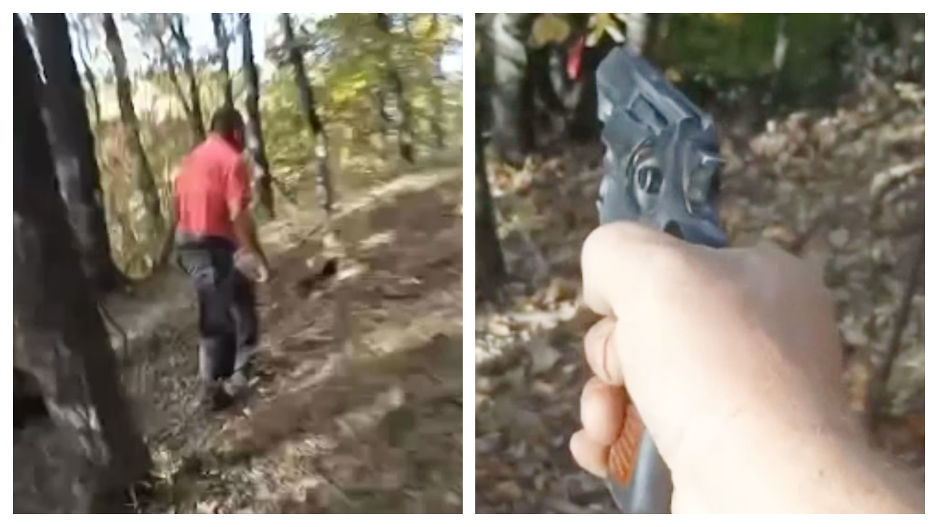 Un pădurar din Mehedinți a filmat momentul în care urmărește și trage cu pistolul ...