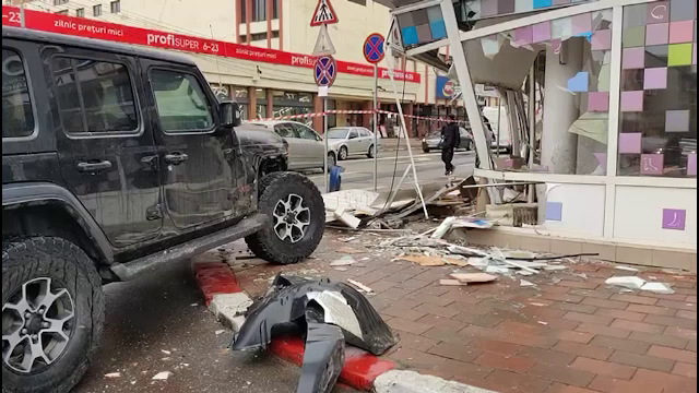 Vitrina unui magazin din Târgu Jiu a fost făcută praf vineri dimineață de un șofer ...