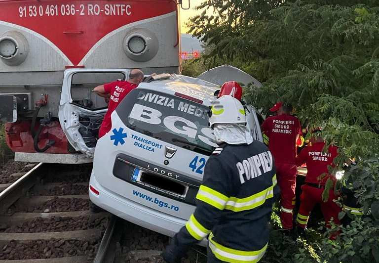O ambulanţă privată care urma să preia un pacient a fost spulberată de un tren de ...
