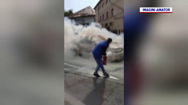O mașină a luat foc în mers, pe o stradă destul de aglomerată din Târgu Jiu.