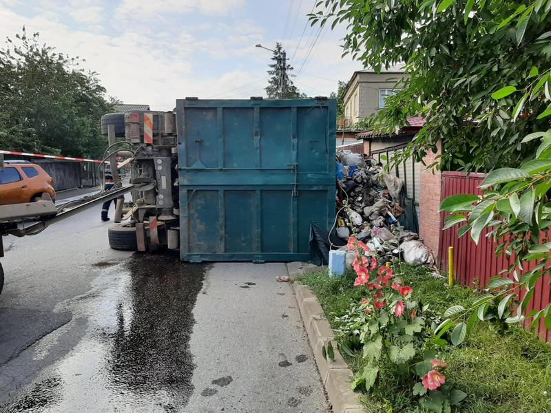 Un camion care transporta gunoi s-a răsturnat, miercuri, pe o stradă din municipiul ...