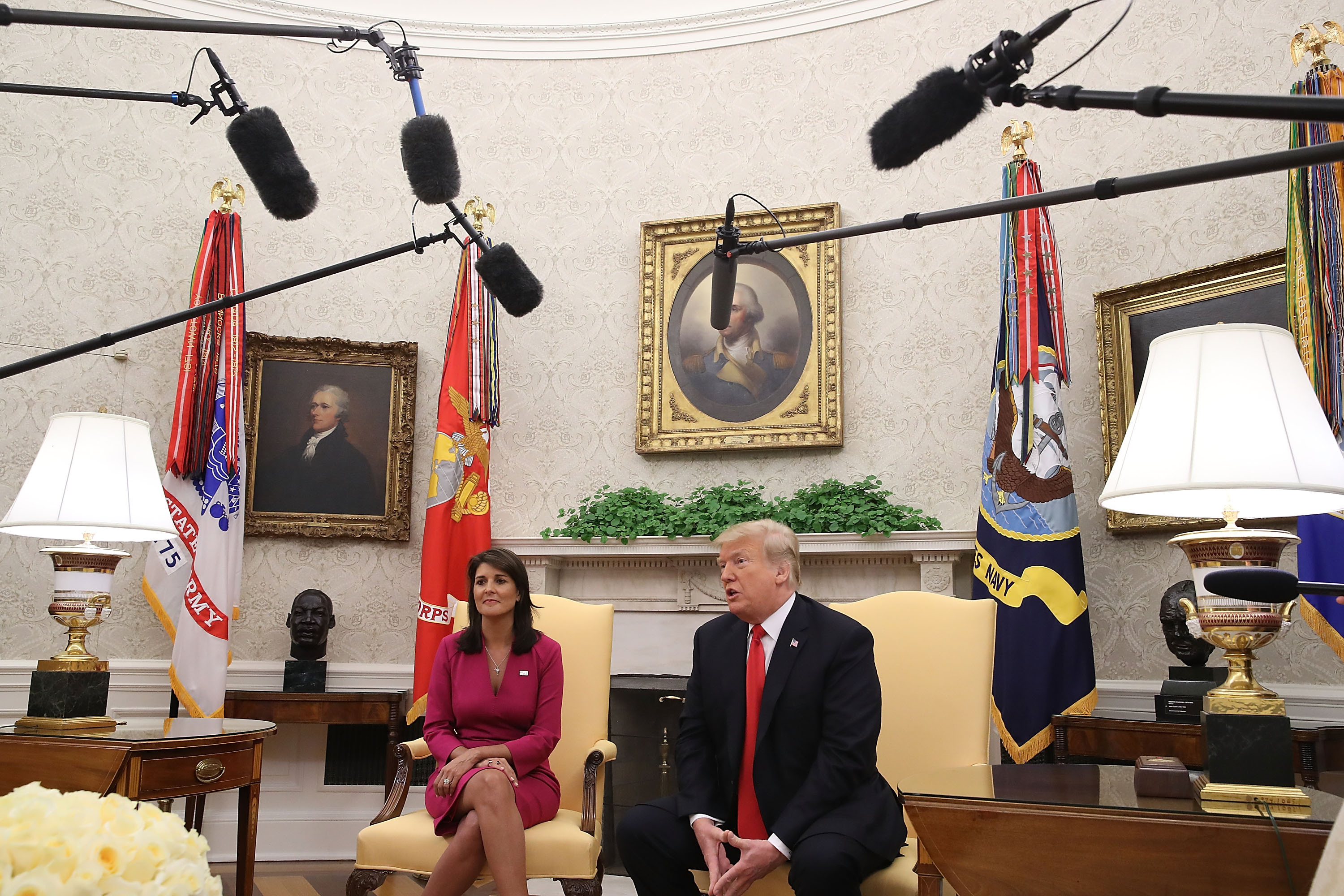 Fosta ambasadoare a SUA la ONU Nikki Haley şi fostul preşedinte Donald Trump îşi ...