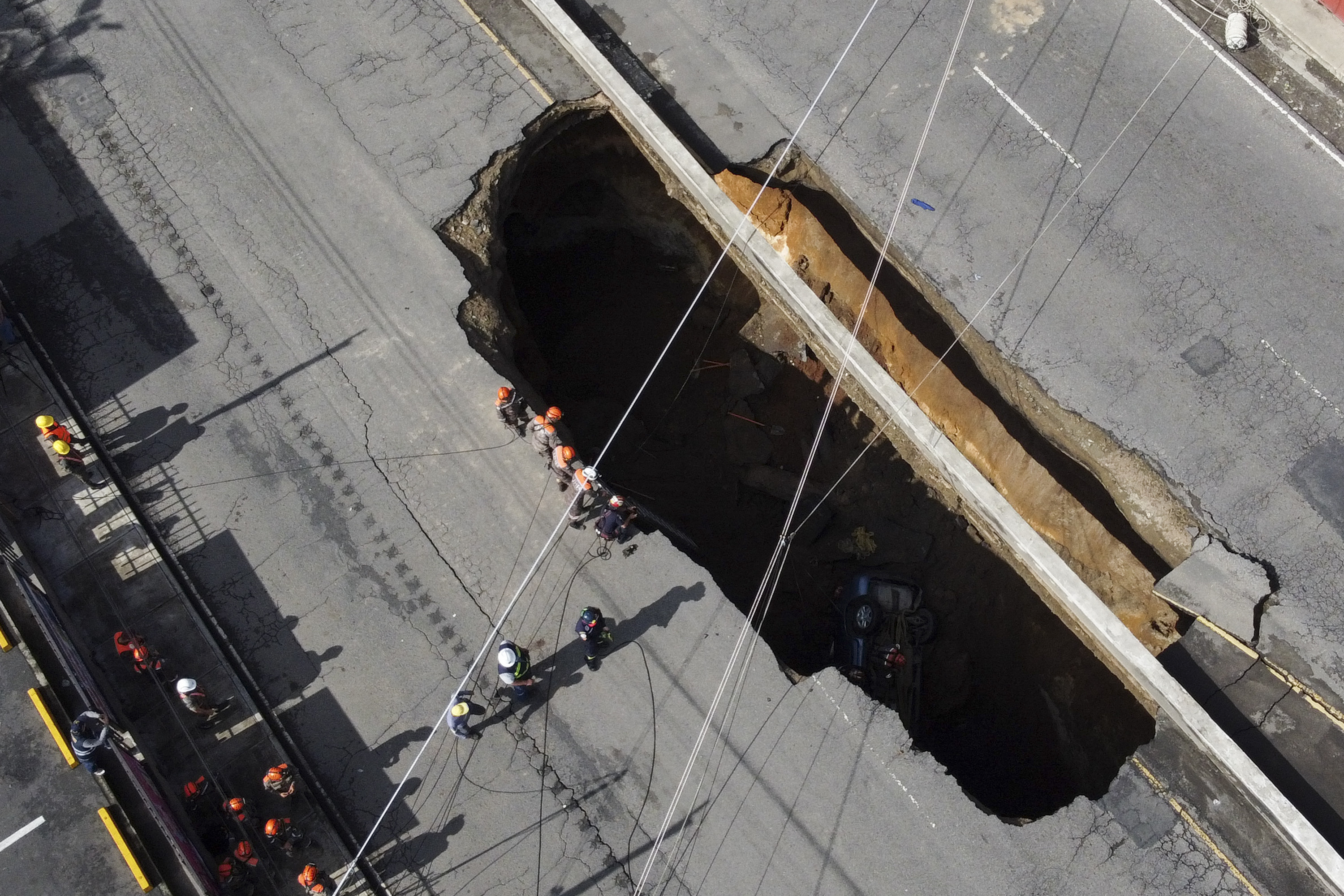 Pământul s-a surpat, creând un crater uriaș pe un drum public din Guatemala.