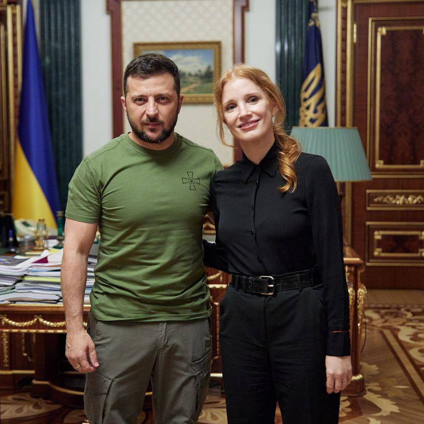 Actriţa Jessica Chastain a vizitat, duminică, Ucraina, ea întâlnindu-se la ...