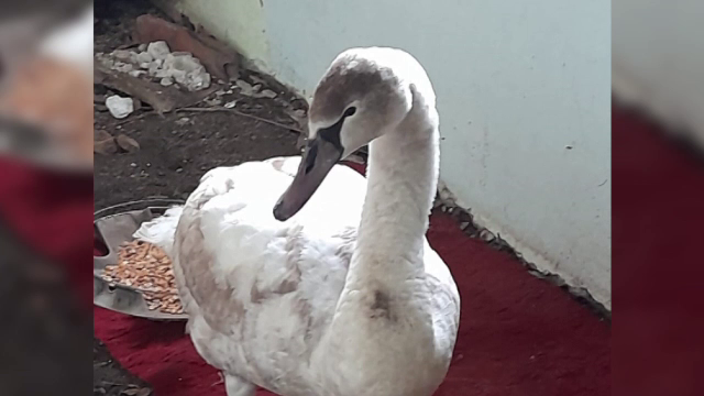 Două lebede înghețate și înfometate au fost găsite rătăcite pe un câmp ...