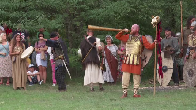 Echipați cu arcuri, sulițe și scuturi, mai mulți războinici și-au arătat măestria pe un ...
