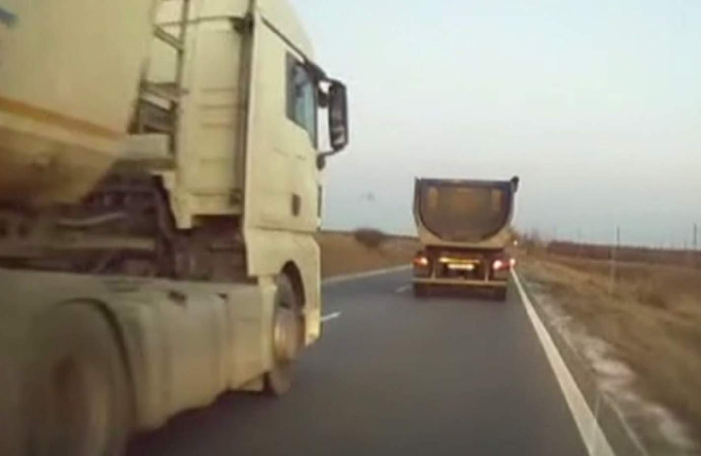 Un șofer de camion a fost surprins de o cameră de bord când șicana, în ...