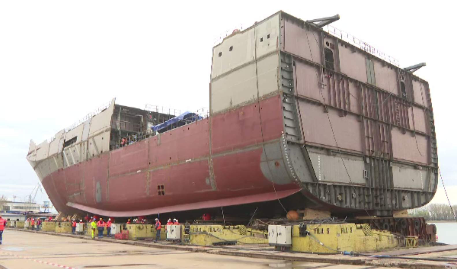 Două module dintr-o navă militară de mari dimensiuni, lansate la apă, în Galați. Cine e beneficiarul