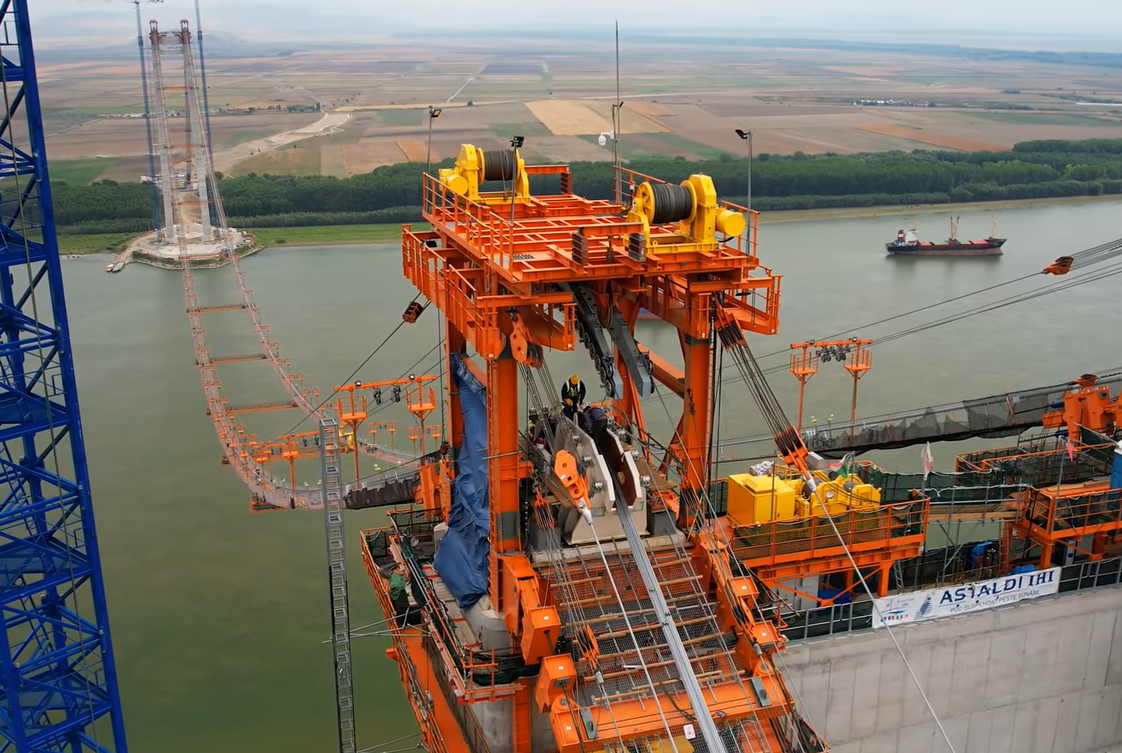 A fost montat cablul principal care susține podul de peste Dunăre de la Brăila. Lucrările ...