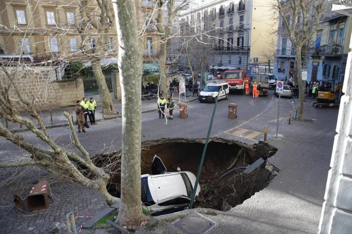 Două mașini au fost înghițite de o groapă apărută, miercuri dimineață, pe o stradă ...