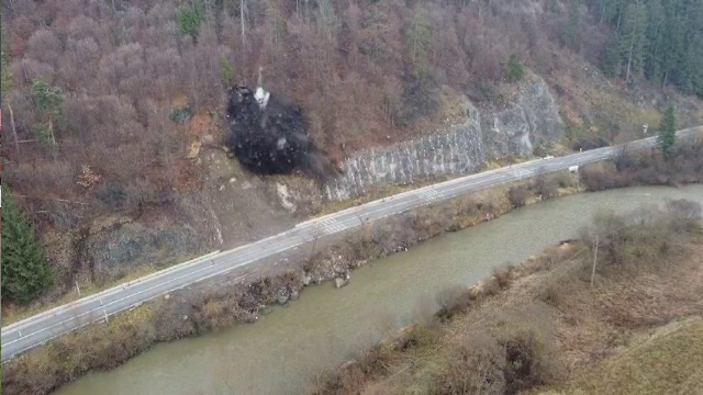 Detonare controlată pe Valea Mureșului. Specialiștii au dinamitat o stâncă de ...