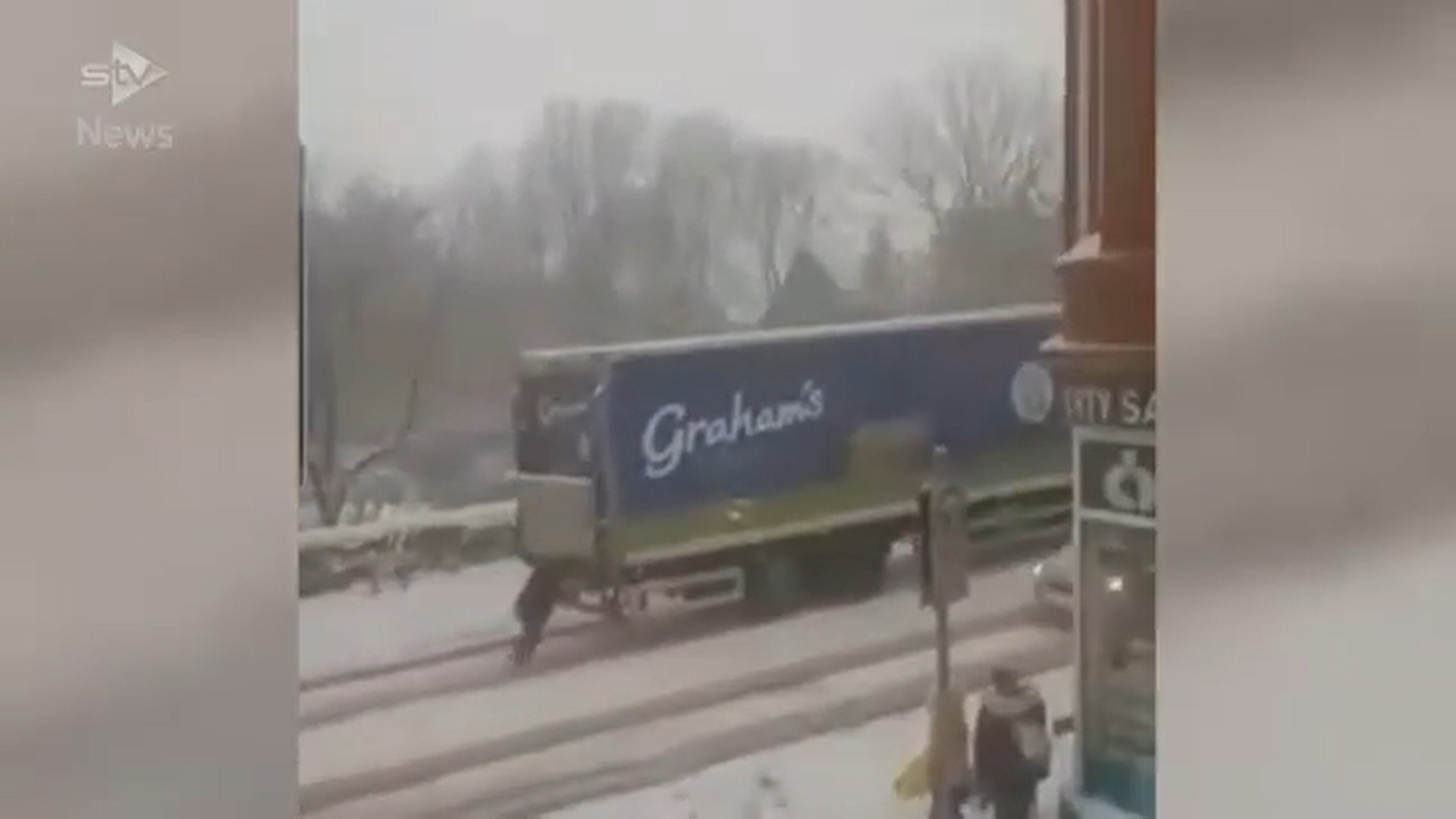 O filmare cu o femeie din Scoția ce pare că împinge la deal un TIR ce aparține unui ...