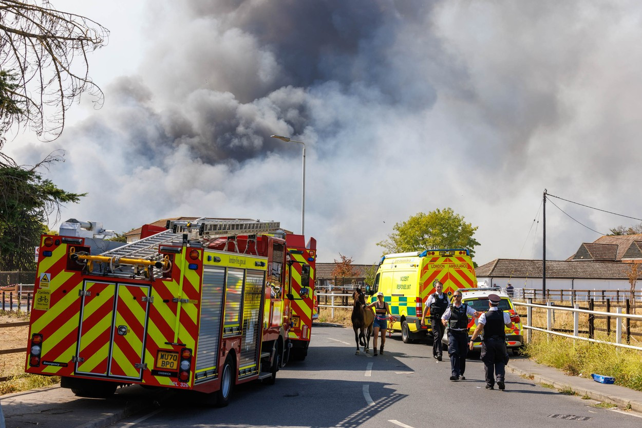 Circa o sută de pompieri încercau marţi după-amiază să stingă un incendiu care ...