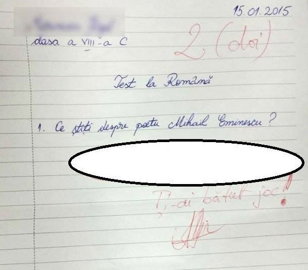 De necrezut! Ce a putut sa scrie un elev de clasa a VIII-a despre Mihai Eminescu chiar de ...