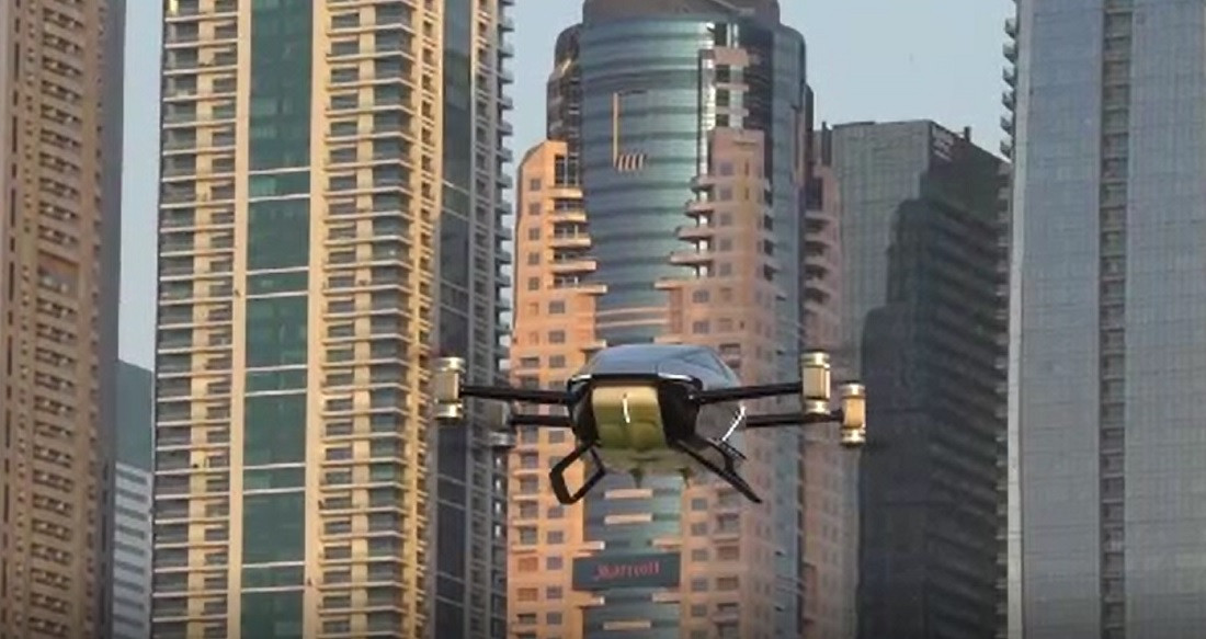 O companie chineză a testat în Dubai un taxi zburător, care poate atinge și 130 de ...