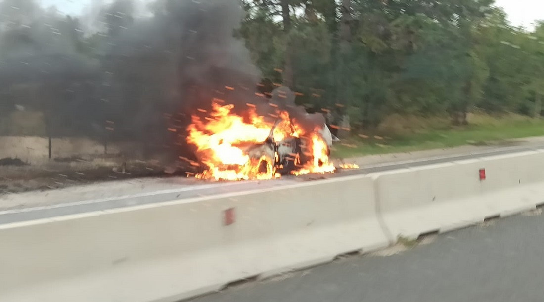 Un autoturism a ars complet, vineri dimineață, pe Drumul Național 1, după ce a luat foc ...