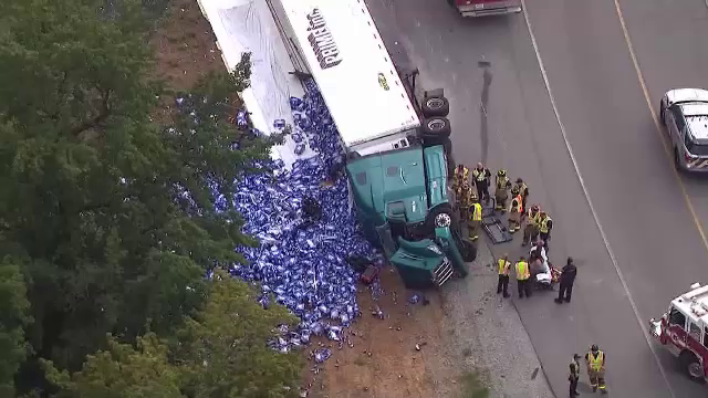 Drum... cu ghinion, pentru un şofer american! Bărbatul transporta mii de cutii de bere, ...