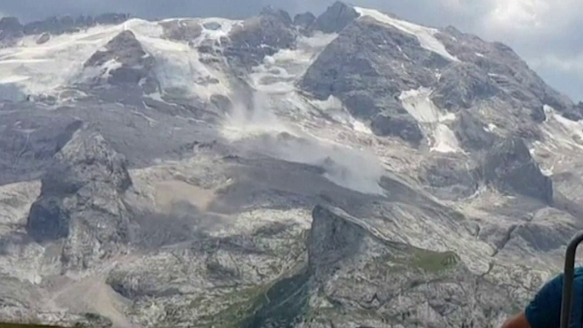 Desprinderea unei bucăți din Gheţarul Marmolada, cel mai înalt vârf al ...